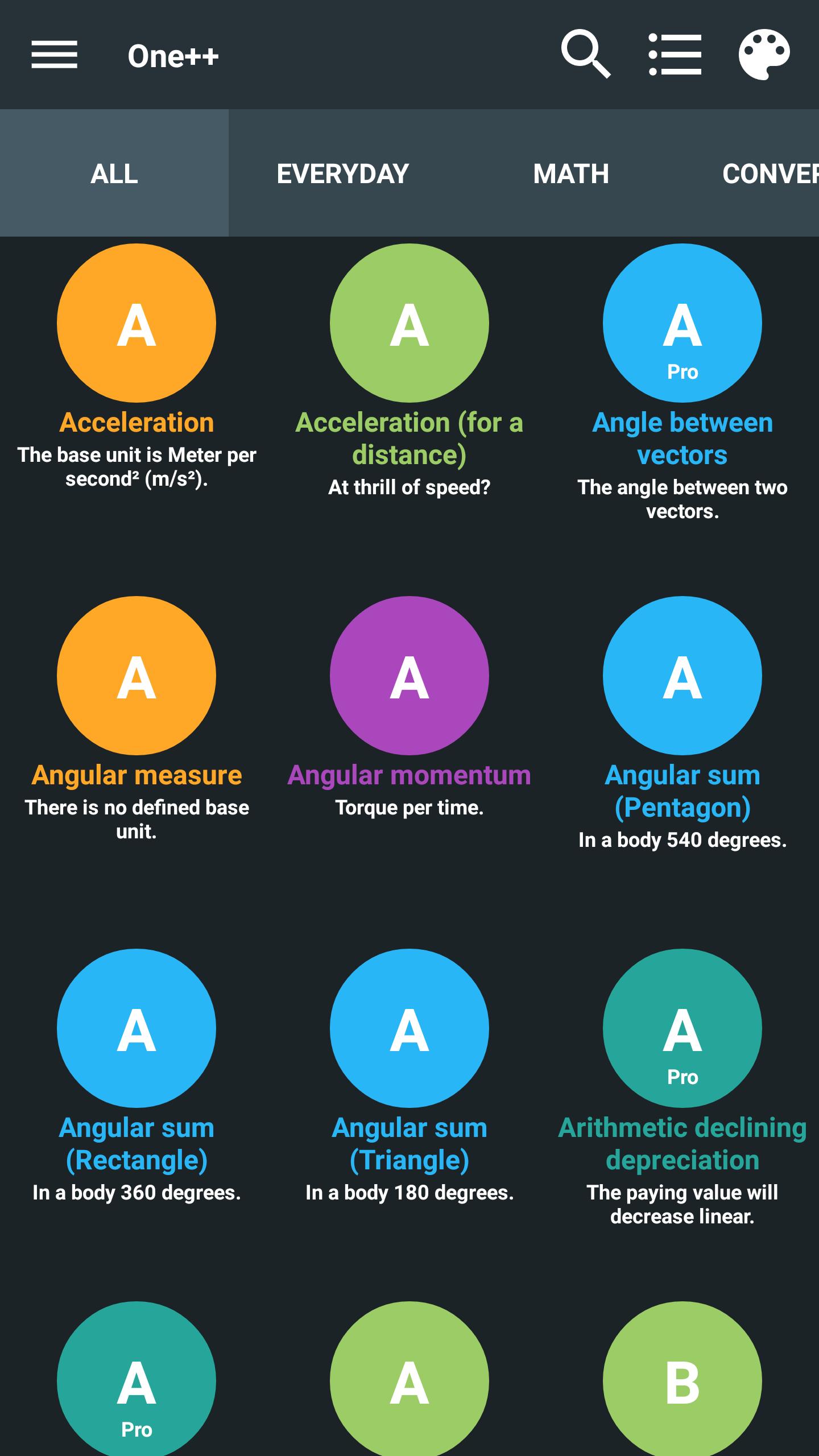 ★ 5 categories: Everyday, math, converter, physics und economy