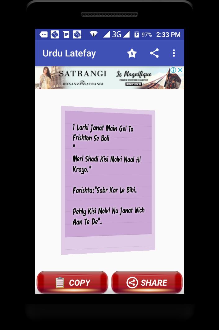 Top Collection of Best Funny Lateefay Jokes and Comics SMS Messages in Urdu / Hindi / Punjabi languages. This app contains
