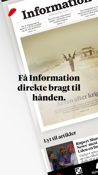 Use of the e-newspaper requires a subscription to Information. As a subscriber, you also have access to Information's other app, which is not based on the printed version of the newspaper as here, but is updated continuously and presents the newspaper's articles, photos and audio in a clean digital design.