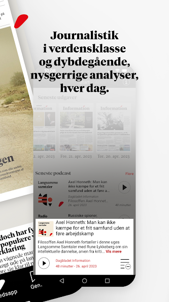 Information's e-newspaper for Android is a digital copy of the printed newspaper. Use the e-newspaper if you want access to journalism with background and perspective in a package you know from the printed newspaper.