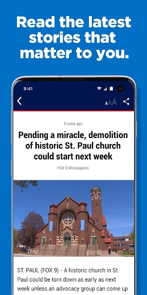 News doesn't wait, why should you? Take FOX 9’s award-winning news everywhere you go! Our app connects you with top stories in and around the Twin Cities — complete with breaking news alerts, live video, and real-time weather forecasts for Minneapolis or St. Paul.