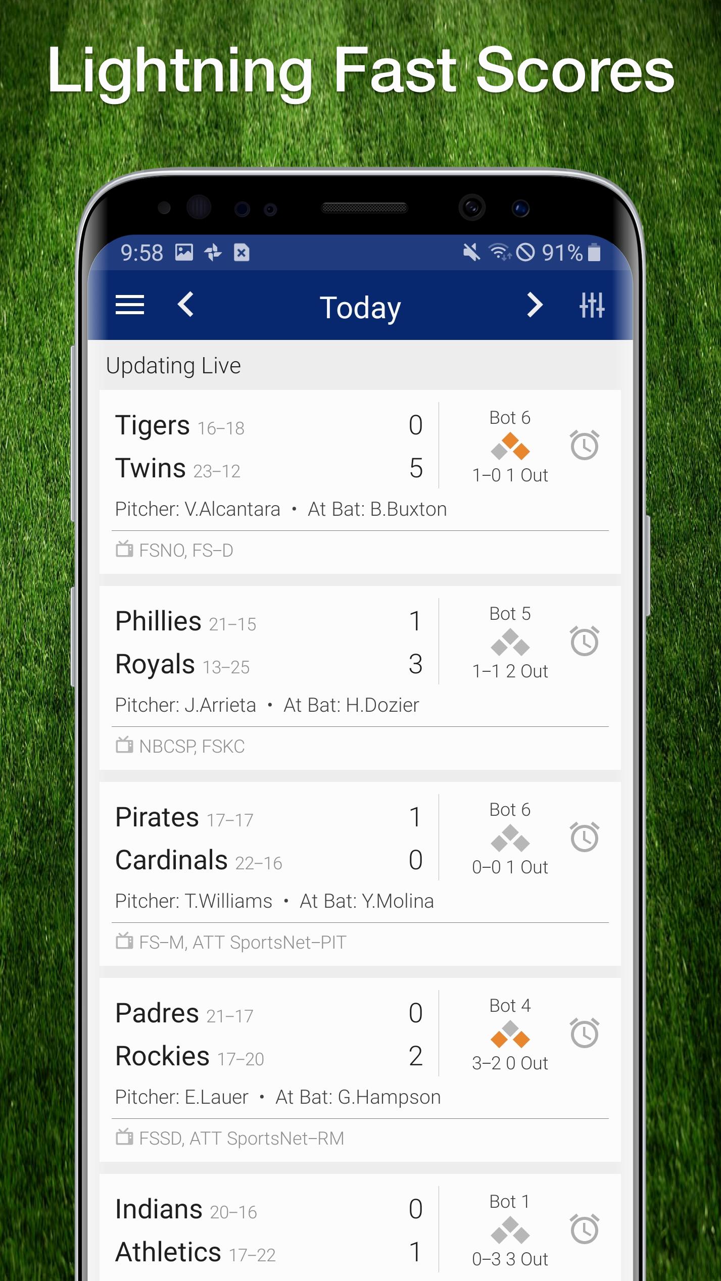 * Immediate game notifications for scores, close games, extra innings, and more!