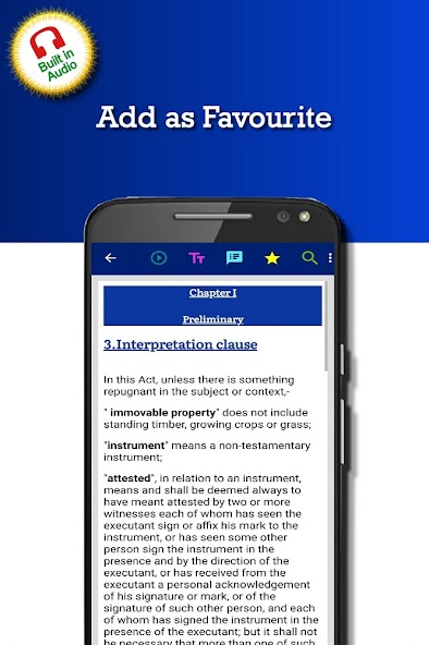 This ‘Transfer of Property Act 1882 (TPA)' app is very useful for Law professionals (Lawyer, Attorney ... and others alike.), Teachers, Students, anyone interested in learning this Law of India.