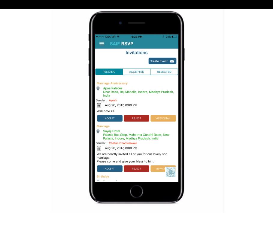 ▸ يحصل الضيوف على إشعار مناسبة عن طريق تطبيق SAIF RSVP بواسطة رسائل فورية.