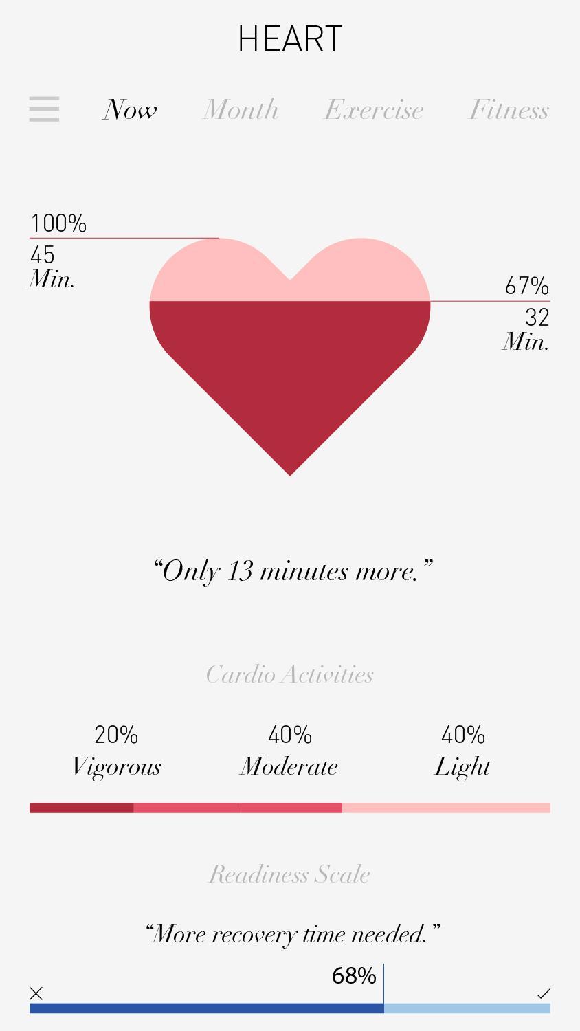 - انظر درجة القلب الخاصة بك. انظر ملخص للنشاط البدني الذي قمت به في يوم واحد (الضوء والمعتدل والقوي).