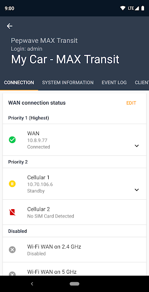 - مراقبة حالة WAN وعناوين IP الخارجية وروابط SpeedFusion.