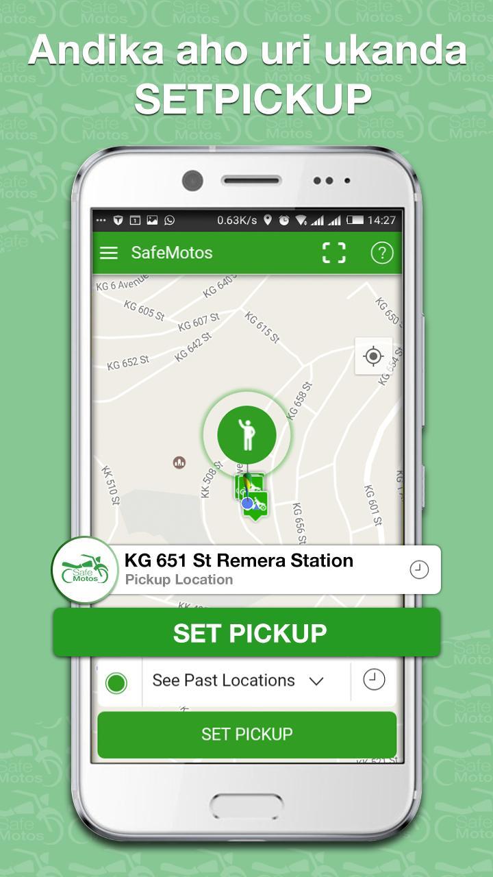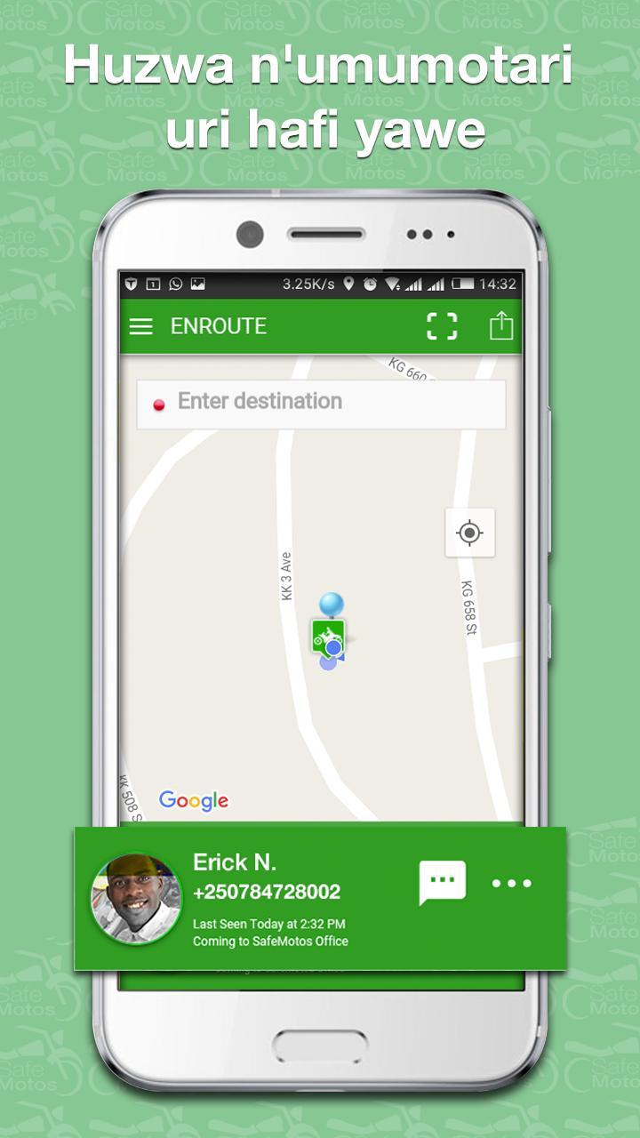 Binyuze Muri Telefoni Ngendanwa Zizwi NKA Smartphone ، Abakiriya babasha kubona umumotari aho bari bakoresheje apurikasiy ya mbere nziza yubatswe mu rwanda. Abakiriya babasha Kuba Bakwishyura Byoroshye Bakoresheje Ikofi ya SafeMotos Iri Muri Apurikasiyo Iba ihuye na mopility money ، amafaranga yo mu ntoki ndetse na ائتمان card ku giciro cyiza kigenwa hagendewe.