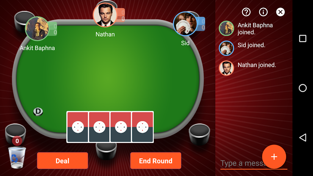 مرحبًا بكم في تطبيق لعبة Just Cards ! من خلال تطبيقنا ، يمكنك تشغيل أي لعبة بطاقات تحبها مع أصدقائك أو عائلتك أو الغرباء من جميع أنحاء العالم ، دون أي قواعد محددة يفرضها التطبيق.