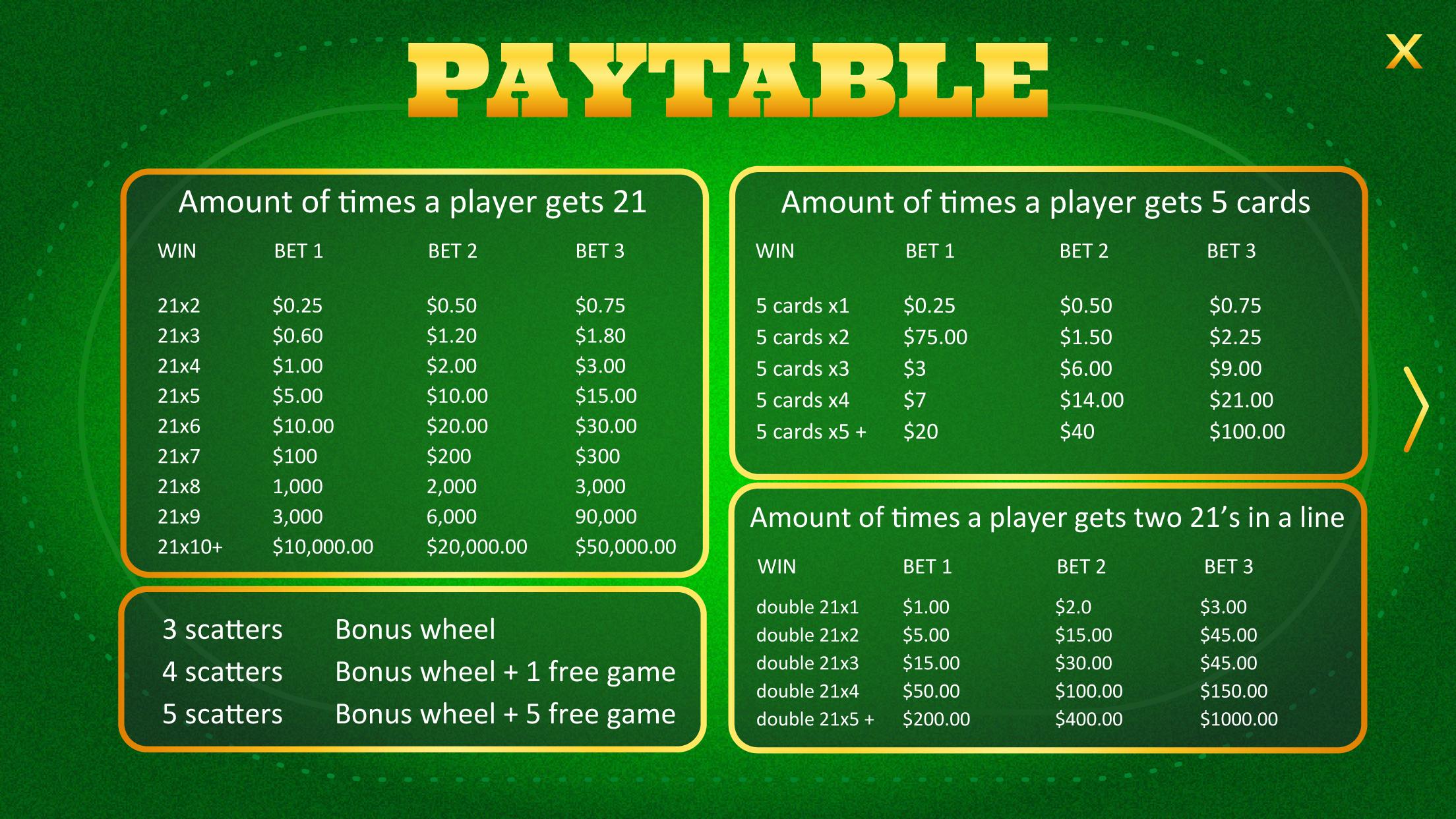 كلما زاد عدد المرات التي تحصل فيها على 21 في خطوط الفتحة كلما فزت أكثر.