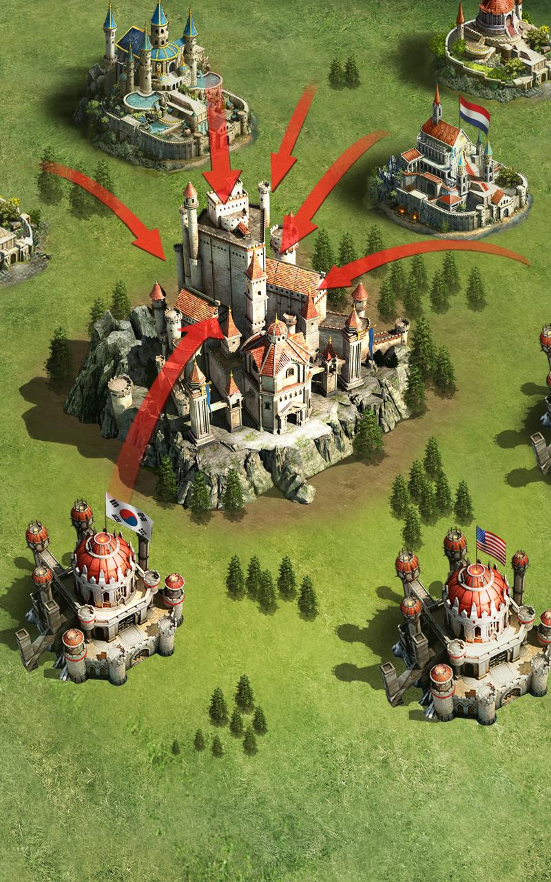 بناء الحصون لتحالفاتك وتوسيع أراضي تحالفك. جمع الموارد مع أصدقائك لزيادة إنتاج الموارد.