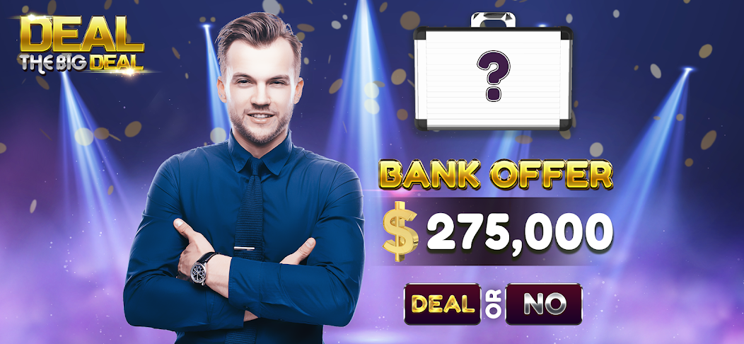 Deal The Big Deal هو عرض للألعاب حيث يتنافس المتسابقون مقابل مليون دولار عن طريق اختيار حقيبة تحتوي على مبلغ نقدي غير معروف. يجب عليهم القضاء على حقائب أخرى ويقررون ما إذا كان سيتم أخذ عروض من "" المصرفي "" الذين يحاولون شراء قضيتك التي اخترتها. تصبح اللعبة أكثر كثافة حيث يتم الكشف عن المبالغ النقدية القيمة. يمكن للمتسابقين معرفة ما إذا كانت ثروة تفضل الجريئة.