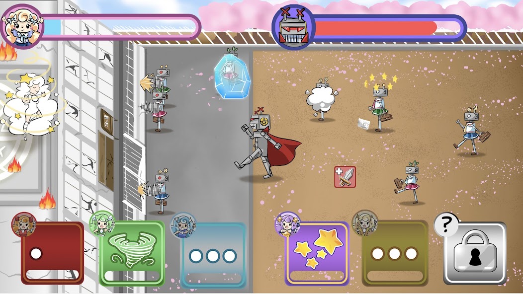 دفع روبوتات جرلي التي تأتي إليك. يجب ألا يهدموا الفصل الدراسي. يمكنك تجميد الروبوت ، وشللهم ، وإطلاق النار عليهم ، ... باختصار ، يجب أن تقتل أعدائك بحكمة.