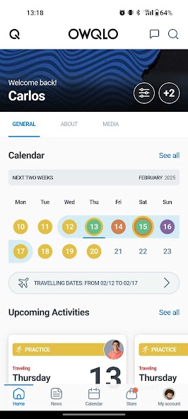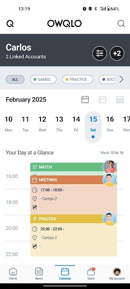 Greifen Sie auf Ihr personalisiertes Training, Spielen und Ereigniskalender zu.
