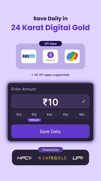 Digital Gold Savings: You can Save Money automatically in Digital Gold on a Daily, Weekly and Monthly basis. With the Round Off feature, you can Save your Spare Changes every time you purchase something.