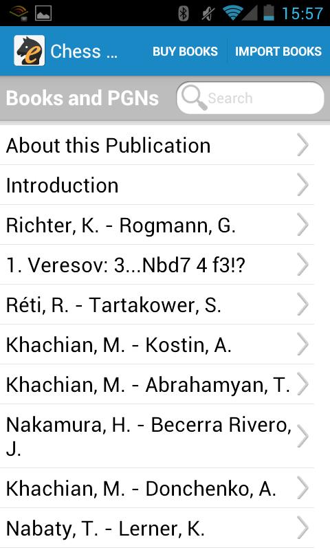 PGN -Betrachter mit Lagermotor. Bitte beachten Sie, dass wir den In-App-Kauf im 24. März einstellen werden. Nach dieser Zeit können Sie alle Einkäufe wiederherstellen. Sie können eBooks direkt von der Everman-Schach-Website kaufen, häufig zu einem Rabatt, in dem EPUB- und Chessbase-spezifische Versionen enthalten sind.