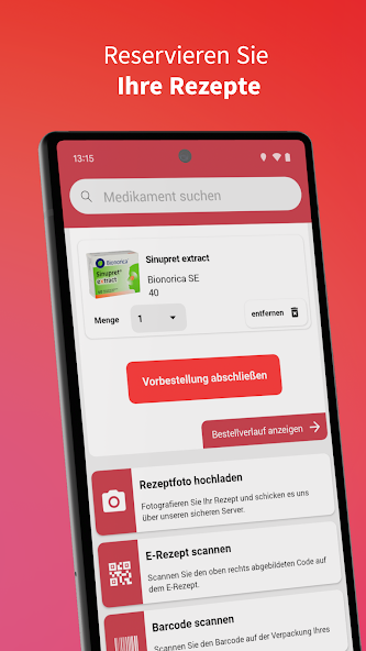 Wählen Sie eine Apotheke aus, medikamentieren vorbestellen und verwalten Sie Ihre Aufnahme