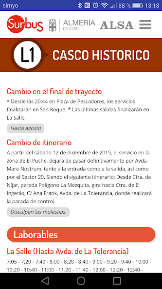 Offizielle Anwendung von Surbus , städtischer Busdienst von Almeria