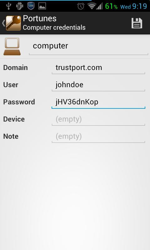 Ihr Telefon ist nur "intelligent" mit der Portunes -Anwendung für mobile Geräte. Ihre Daten waren nie sicherer! Portunes ist verschlüsselter Speicher zum Schutz Ihrer sensiblen Daten wie Kreditkarten, Bankkonten, Benutzernamen und Kennwörter, Pins, privaten Notizen usw. Alle Daten werden durch Kennwort gegen Hacker und Malware geschützt. Genießen Sie eine automatisierte Sicherung in der Cloud und lassen Sie Ihre Daten immer zugänglich sein, und machen Sie sich keine Sorgen, Ihre Informationen zu verlieren. Greifen Sie auf die gleichen Daten auf Ihrem Desktop oder Laptop zu und verwalten Sie die gleichen Daten, die sofort über den Cloud -Speicher synchronisiert werden.