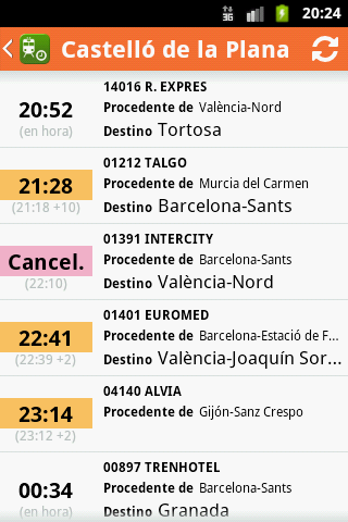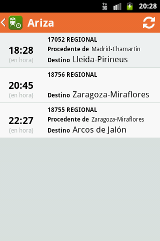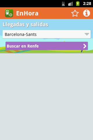 EnHora können Sie die Ankünfte und Abflugtafeln der Hauptstationen in Spanien auf Ihrem Handy tragen. Wenden Sie sich in Echtzeit in Echtzeit an die Verkehrsinformationen von Renfe und finden Sie in Sekundenschnelle heraus, ob der Zug rechtzeitig Läufe fahren muss oder ob Sie spät an Ihrem Ziel ankommen.