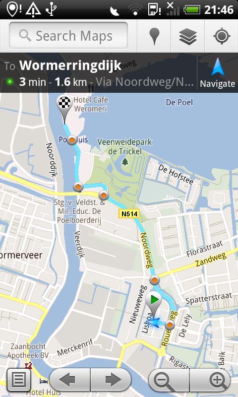 Nachdem Sie eine Liste von Pois in Ihrer Nachbarschaft gefunden haben, können Sie eine auswählen und zeigen, dass auf der Karte eine Route mit der Android-integrierten Navigation direkt planen. Auf diese Weise kann jede App angezeigt oder weiterleiten, beispielsweise Google Maps zum Anzeigen und TomTom oder Waze zum Routing. Wenn Sie glauben, dass der POI geschlossen wurde, nicht in Ordnung ist oder ein Duplikat ist, können Sie dies angeben.