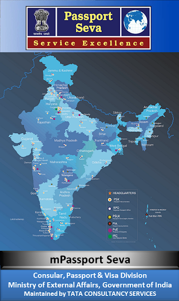 Das Passport Seva-Projekt, das von der PSP-Abteilung des Ministeriums für externe Angelegenheiten (MEA) der indischen Regierung durchgeführt wird, zielt darauf ab, allen passbezogenen Diensten den indischen Bürgern schnell, bequem und transparent zu erbringen. Dies ist eines der größten Projekte der indischen Regierung im Rahmen des National E-Governance Plan (NEGP), der im öffentlich-privaten-Partnerschaftsmodus mit TATA Consultancy Services (TCS) als privater Partner ausgeführt wird. Das Projekt ist bereits betriebsbereit und bedient Bürger über 93 Passpass Seva Kendras und 412 Postpass Seva Kendras in ganz Indien.