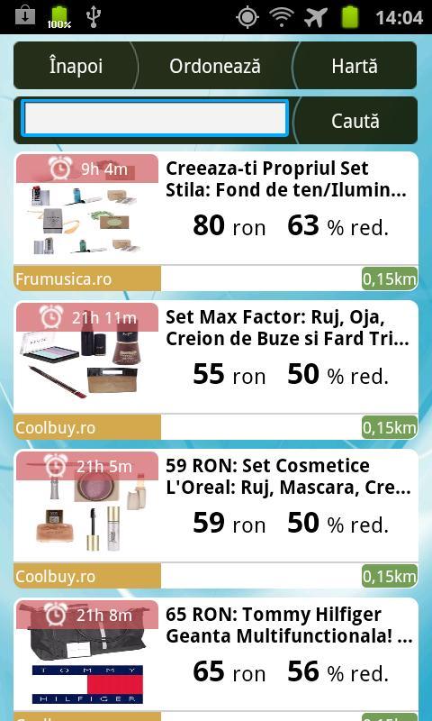 Adulmec.ro App bringt Ihnen Hunderte von Angeboten aus Bukarest, Braila, Brasov, Craiova, Cluj-Napoca, Constanta, Galati, Iasi, Plosti und Timisoara. Erhalten Sie jederzeit Zugriff auf alle Ihre Lieblingsangebote, indem Sie einfach Ihr Smartphone verwenden.