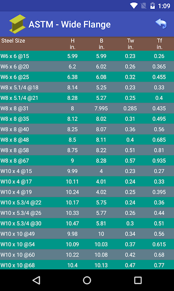 Dimensionstabelle für Standardstahl