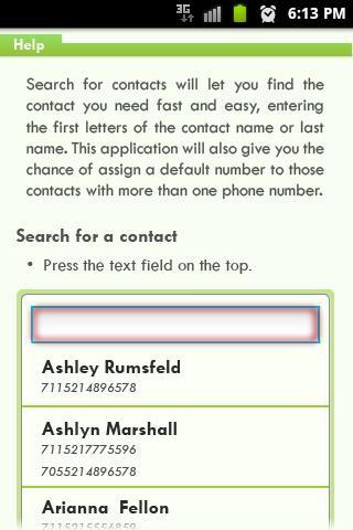 Die Suche nach Kontakten ist ein einfacher und schneller Weg, um Ihre Telefonkontakte zu finden. Diese großartige App macht Ihre Suche effektiver und komfortabler, indem Sie sofort auf Ihre Kontaktinformationen zugreifen. Es ist nicht erforderlich, einen Kontaktnamen erneut einzugeben, um danach zu suchen. Sie müssen nur die ersten Buchstaben des Kontaktnamens oder des Nachnamens eingeben, um ihn zu finden. Sie können sogar eine Standardnummer für einen Kontakt mit mehreren Telefonen auswählen.