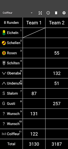 - Einzelne Einträge oder vollständige Runden können rückgängig gemacht werden.