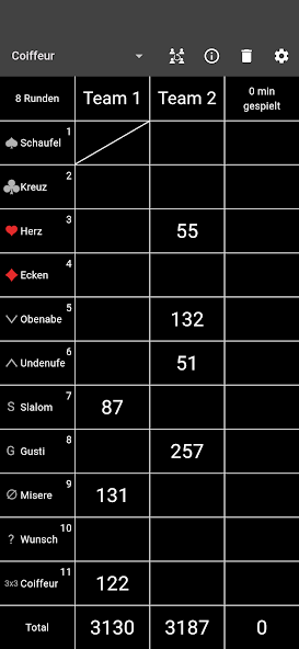 - Einstellbare Punktzahl pro Runde (zB für Doppelkarten 314)
