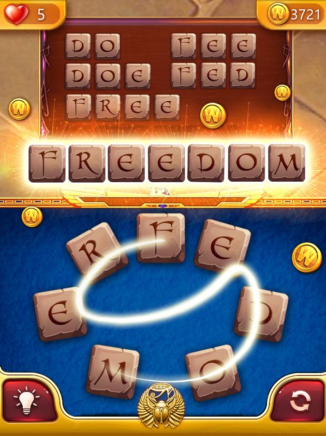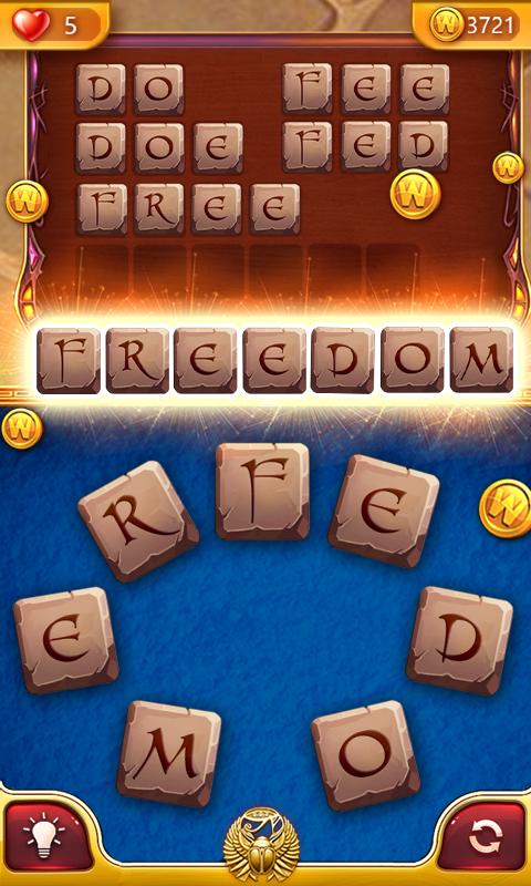 - Finden Sie so viele Wörter wie möglich, um Level freizuschalten und zusätzliche Bonusmünzen zu verdienen.