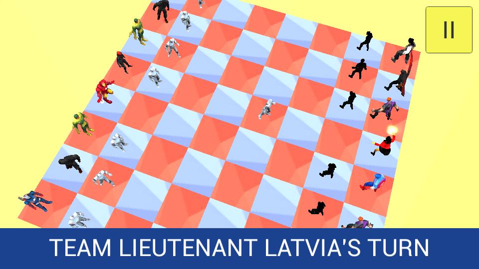 Klassisches Schach mit einem Superhelden -Mix - Team Copper Guy gegen Team Leutnant Lettland