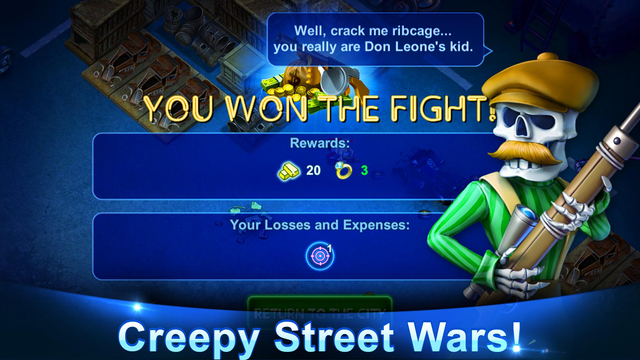 Erhöhen Sie Ihre Bande in Mantua City, einer dunklen, gruseligen Welt, von Menschen bis zu übernatürlichen Kreaturen aller Art. Bauen Sie Ihre Strafstadt, kämpfen Sie gegen Mobster und zerstören Sie feindliche Kapuzen.