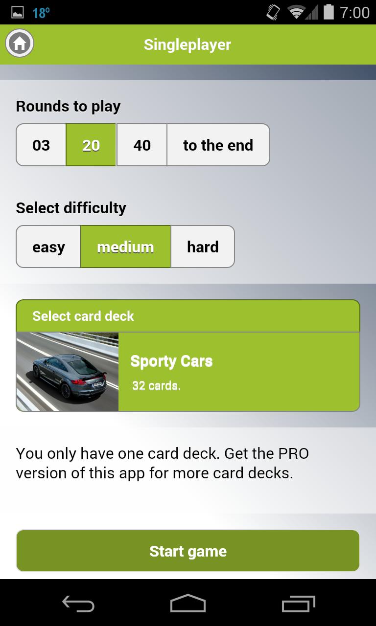 - Spielen Sie Xtrumps Quartett gegen den Computer in 3 verschiedenen Schwierigkeitsstufen. Spielen Sie für eine feste Anzahl von Runden oder bis ein Spieler alle Karten besitzt.