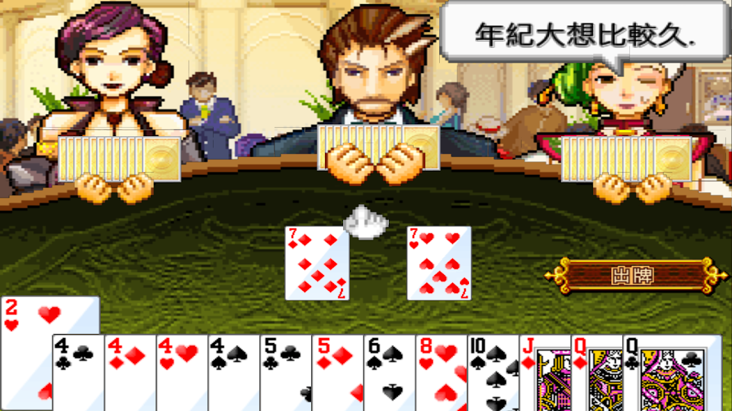 Es ist eine Geschichte in Shanghai auf ad.1930. Sie gehen mit dem Unfall einer Zeitmaschine dorthin zurück und schließen sich einem Pokerspiel „Fan-Tan“ an. Für Survival & Ehre müssen Sie alle Ihre Gegner auf dem Tischbrett besiegen. Nehmen Sie jetzt die harten Spielrunden mit Ihrer einzigartigen Kartenkenntnis und Weisheit durch. Die attraktiven Story -Modi wetten Sie aufgeregter und interessierter. Kannst du das Fan-Tan-Spiel und das Überleben gewinnen?