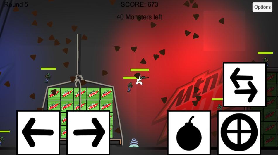 Dies ist ein Shooter -Spiel, bei dem Sie Zombies abkämpfen. Es gibt zwei verschiedene Ebenen, um Ihre Fähigkeiten zum Töten von Zombie zu testen. Derzeit gibt es drei Waffen im Spiel; Das Scharfschützengewehr, das Maschinengewehr und der Raketenwerfer. Wenn Sie sich entlang der Runde fortschreiten, werden die Zombies reichhaltiger und erreichen schnellere Geschwindigkeiten.