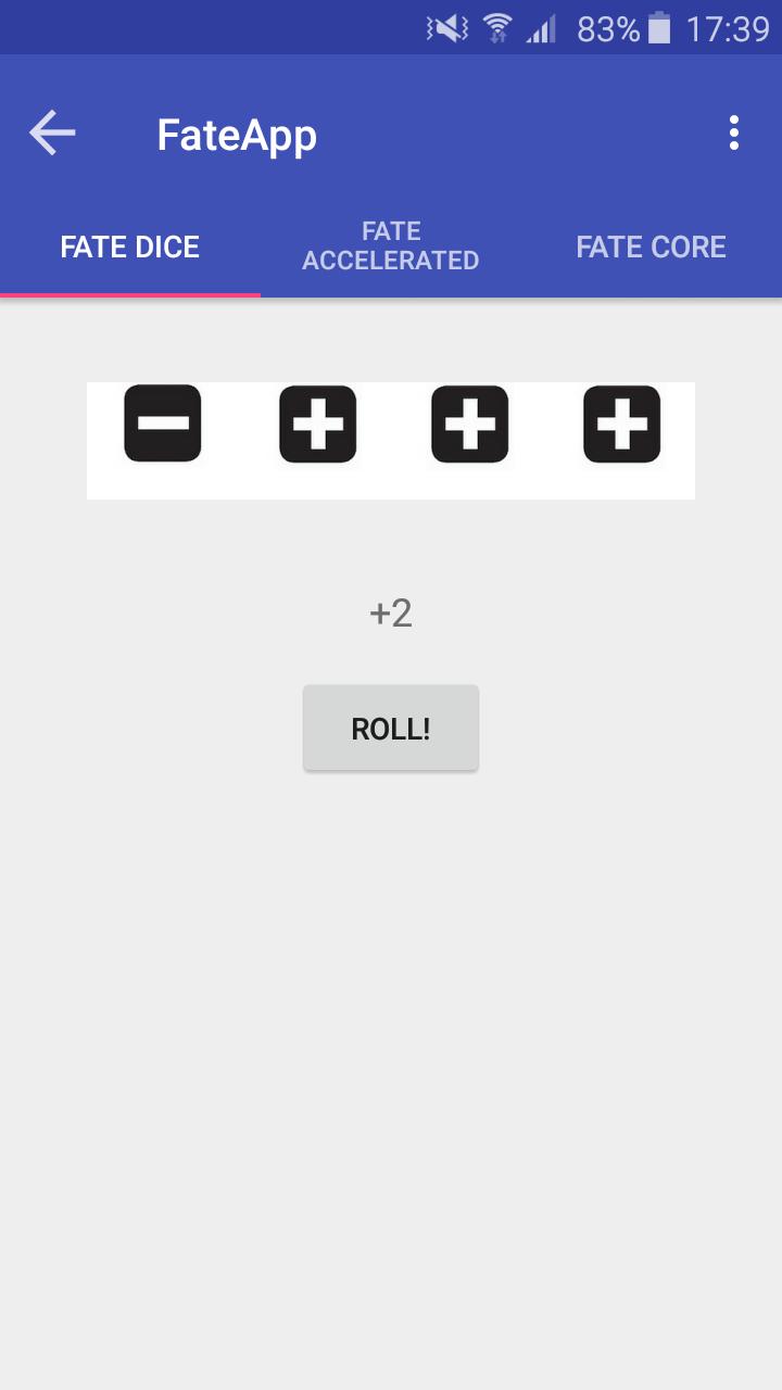 Würfel- und Skill -Roller -App ideal für Schicksals-/Fudge -RPG -Einstellungen.