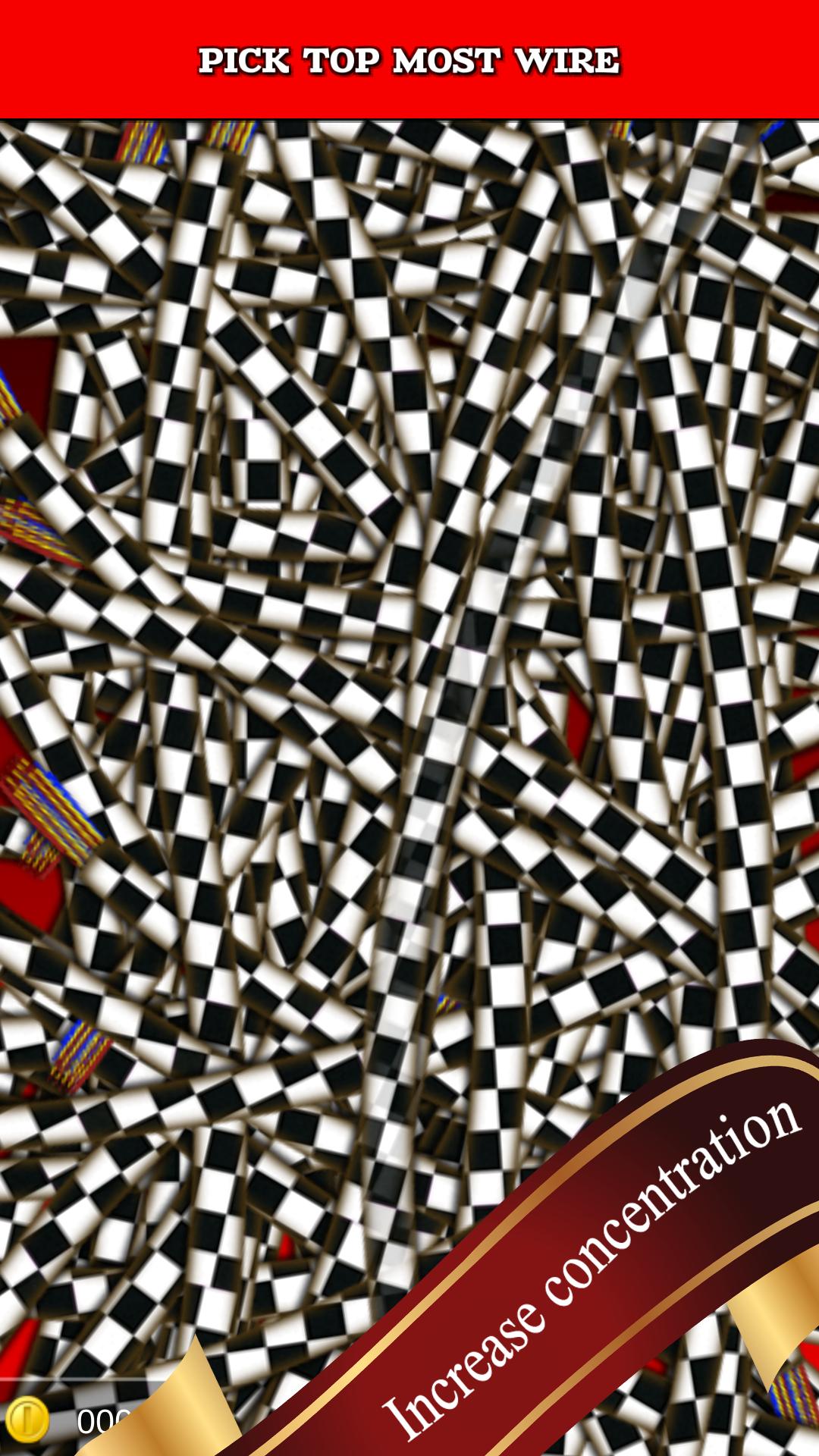 Ein einfaches, aber süchtig machendes und interessantes Spiel, bei dem Sie den obersten Draht finden und aufnehmen müssen, indem Sie den Bildschirm sorgfältig betrachten.