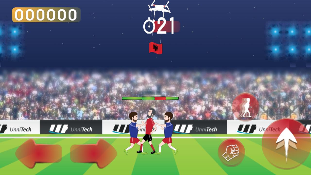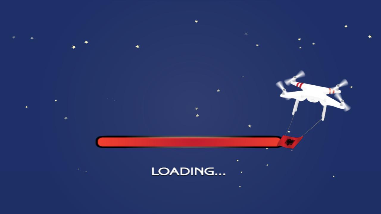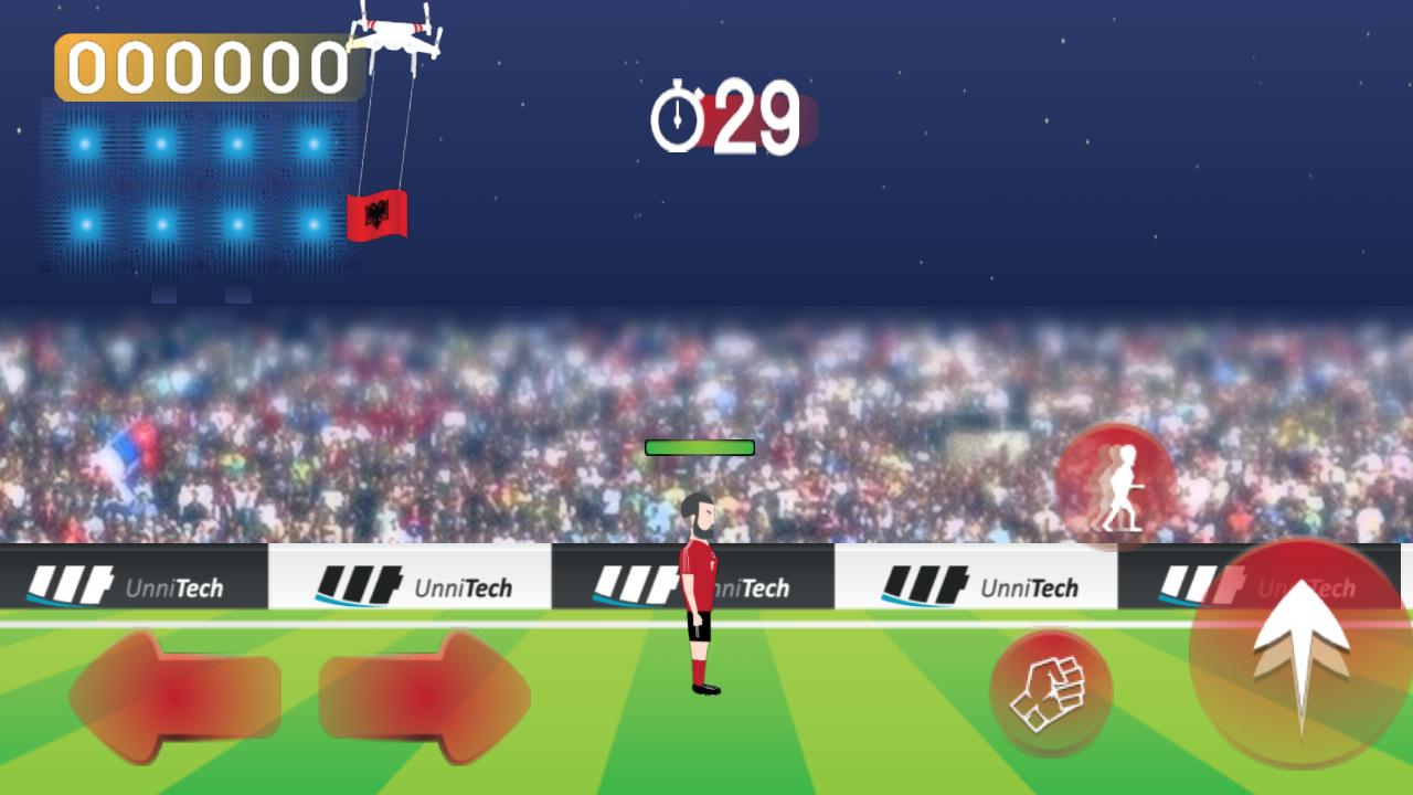 Die Hauptfigur ist der albanische Spieler, der versucht, die Drohne über das Feld fliegen zu lassen.