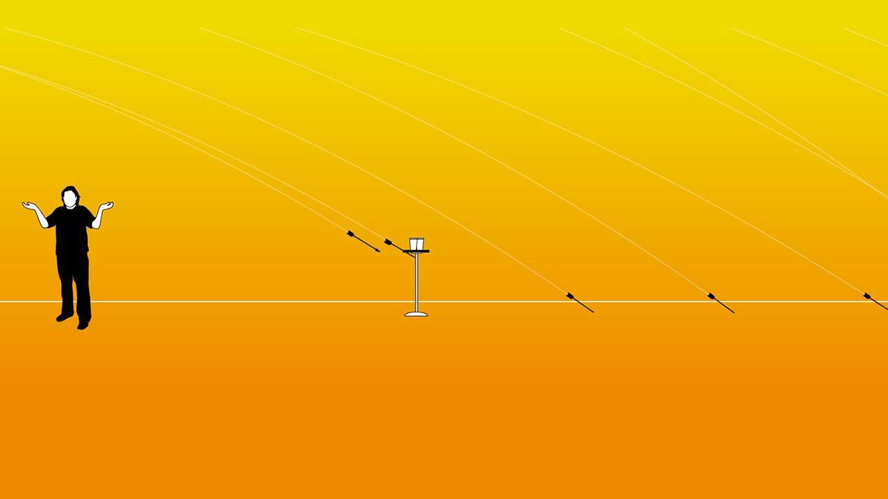 Geben Sie Ihren Bogen gerade genug Kraft im rechten Winkel, um die auf jeder Ebene angegebenen Objekte zu treffen.