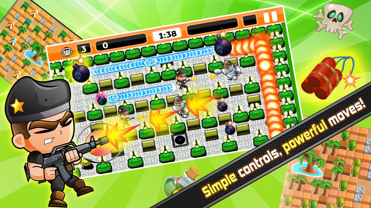- Klassisches Bomberman -Gameplay, mit den Steuerungen für Touchscreen poliert!