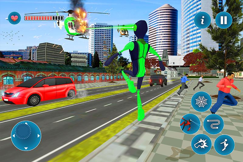Stick Spider Warrior está de regreso con un asombroso superpoderes como Attack de cuerda, Attack Web Spider y otras técnicas de artes marciales. Conduzca el auto deportivo en la ciudad y persiga a los delincuentes para detenerlos mientras toca este simulador de Spider Warrior Rope Man. Puedes volar de un lugar a otro en la ciudad de Nueva York con la ayuda de tu poder en movimiento de cuerdas.