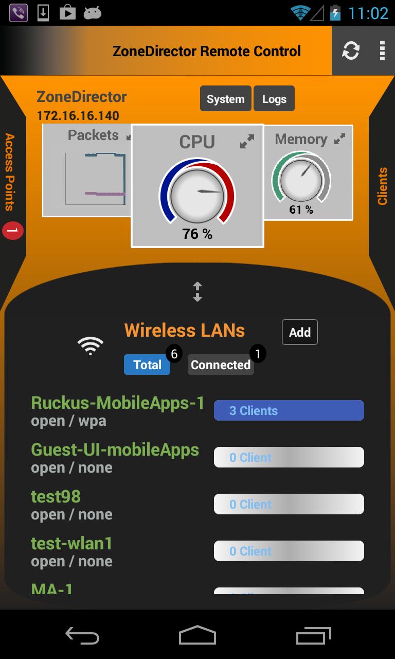 ZoneDirector Remote Control es una aplicación innovadora que permite a los usuarios configurar y monitorear Ruckus Zonedirectores (ZDS) y puntos de acceso (APS). Los usuarios de esta aplicación podrán realizar la configuración AP sobre la marcha, utilizando un teléfono o tableta, incluidas tareas como: