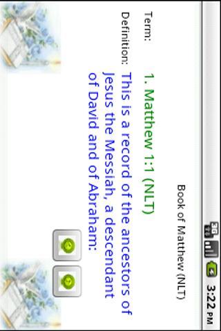 Este es el libro del Nuevo Testamento (la nueva traducción viva). Se divide en versos individuales, cada uno de los cuales tiene una tarjeta hacia adelante y hacia atrás para una retención óptima.