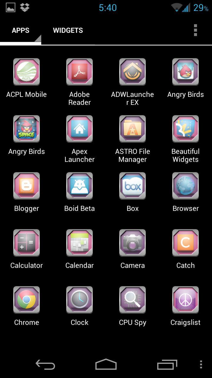 Este es solo un paquete de iconos, no una superposición completa. Como es un paquete de iconos, no se "abrirá" desde el cajón de su aplicación, debe aplicarse a través de la configuración de su lanzador. También he incluido un selector de papel tapiz en la aplicación y actualmente tengo 4 fondos de pantalla para elegir.
