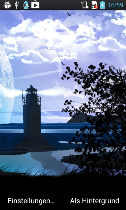 Crea tu propia "vista del lago" romántica. Elija entre un faro con sus luces en movimiento, el arrecife con una roca en los interruptores o un barco de vela. La versión completa viene con Fife diferentes lagos y puedes verla desde un banco del parque o echar un vistazo desde el bosque. La "escena del lago View" se completa con diferentes cielos hermosos y puedes organizar toda la escena en varios colores. Si toca la pantalla, las partículas aparecen como un rayo.