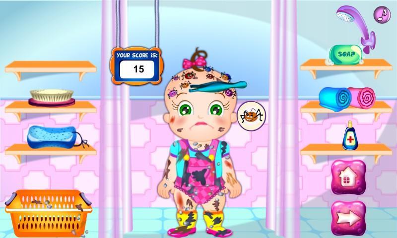 En este juego, la ropa de Baby Amaz está sucia y ella tiene insectos desagradables en el cabello. Ahora necesita un buen baño de burbujas. Clean él quitando la ropa sucia y los insectos en la cabeza. Y da un gran cuidado y ayuda. Nuevo desafío para ti.