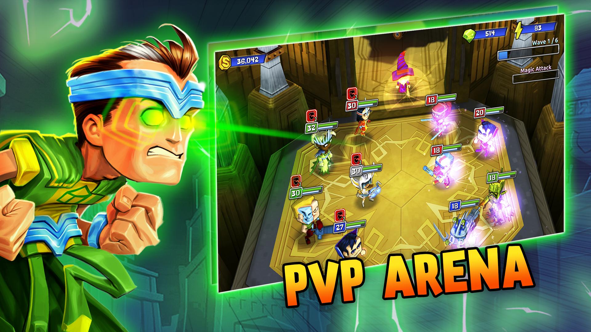 Desbloquee nuevos juegos en eventos limitados. Derrota a los jefes épicos especiales y obtenga runas de poder para evolucionar y fusionar a otros héroes leyendas y campeones. Cree a sus héroes leyendas en este rol inactivo en batallas de PvP. ¡Sea un vengador!