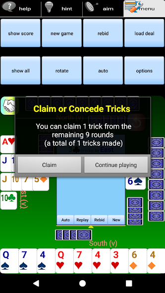 Brij es para ti. Tiene niveles para los principiantes y aquellos que ya juegan Bridge. Hay mucha ayuda en cada etapa, lo que sugiere por qué y qué ofertar o jugar.