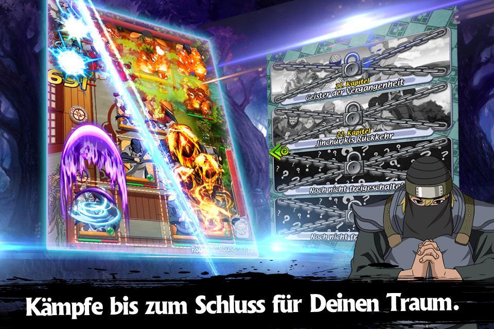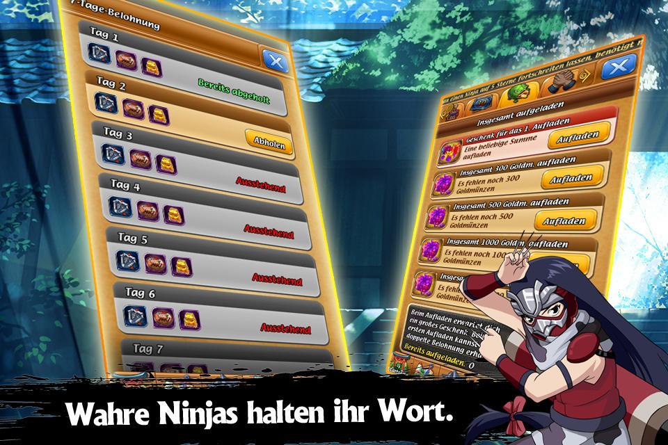 Su equipo consta de 5 Ninjakarten que pueden tener calidad blanca, verde, azul, púrpura o naranja. Este es también el orden de su fuerza y ​​nivel máximo. Además de los ataques normales, todas las cartas también pueden usar habilidades que se provocan en ciertas rondas y calientan al enemigo.